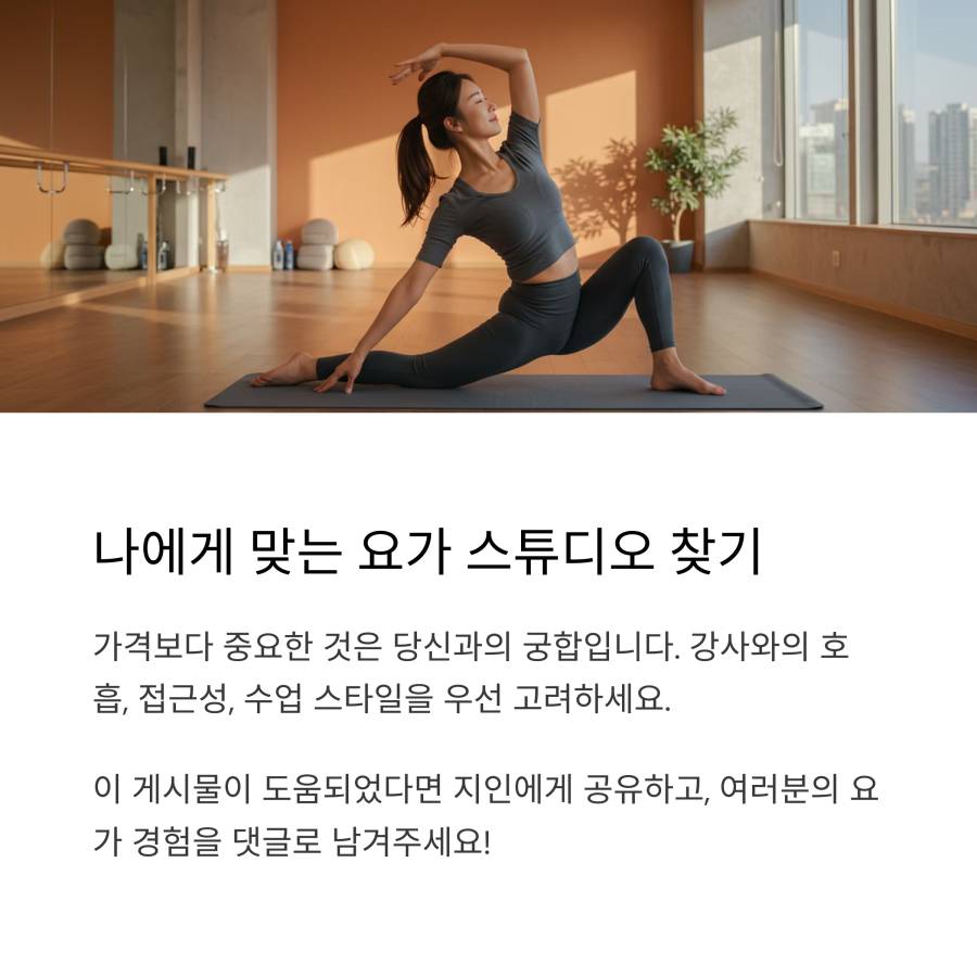 그리고 요가는 꾸준함이 생명이에요. 접근성이 좋아 자주 갈 수 있는 곳이 때로는 최고의 선택일 수 있답니다. 🚶♀️