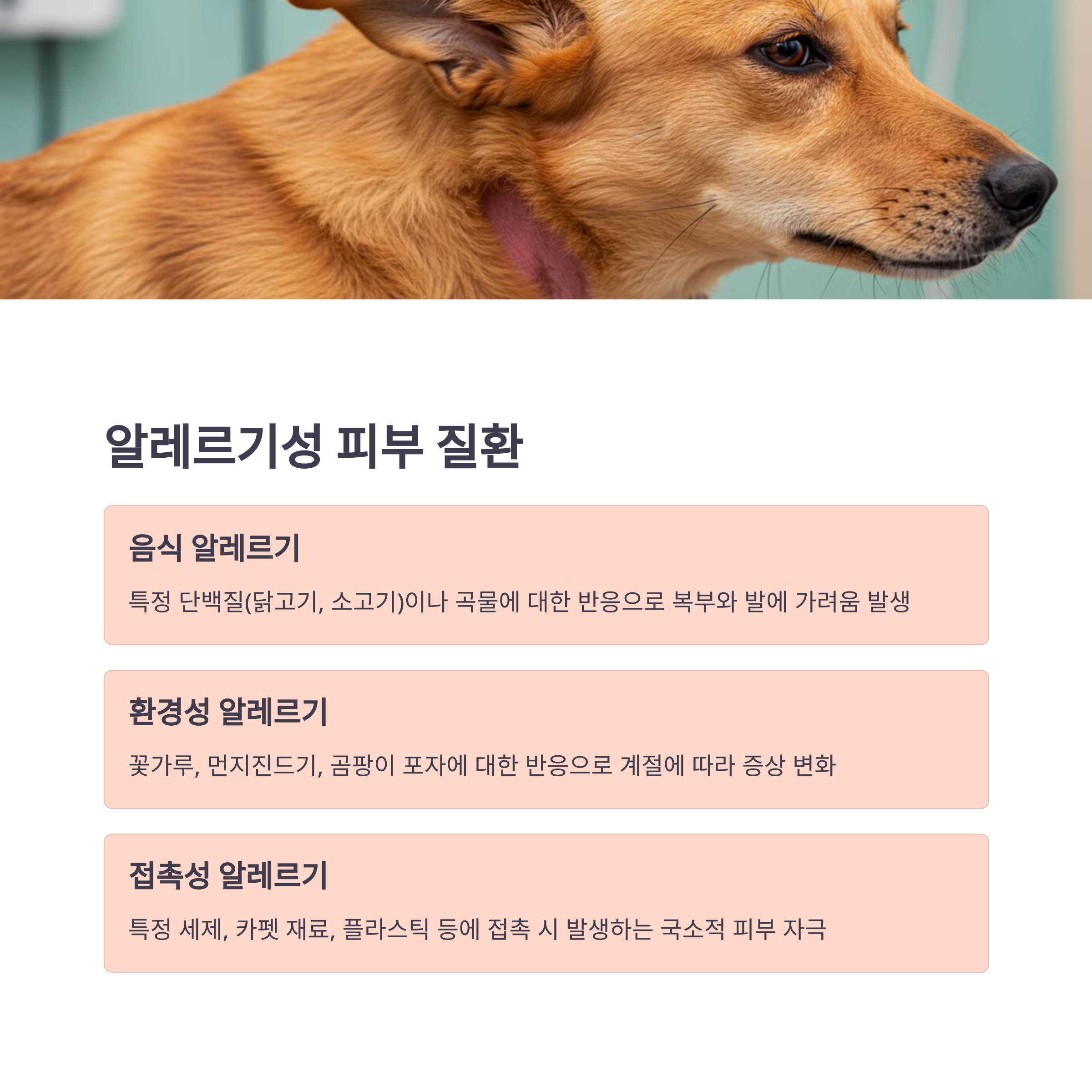 | 세균 감염 | 알레르기 | 외부 기생충 |