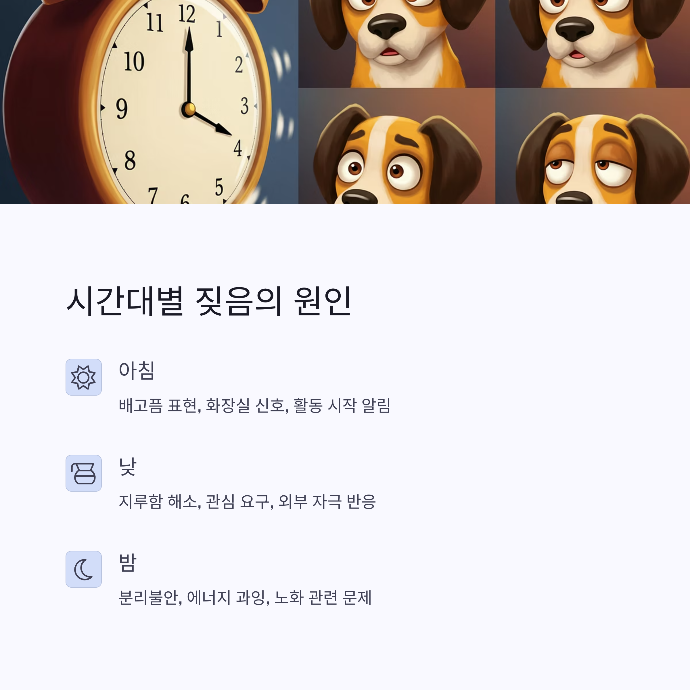 강아지짖음, 반려견행동, 특정시간짖음, 강아지훈련, 강아지심리, 반려동물케어, 강아지건강, 분리불안, 노령견케어, 강아지행동