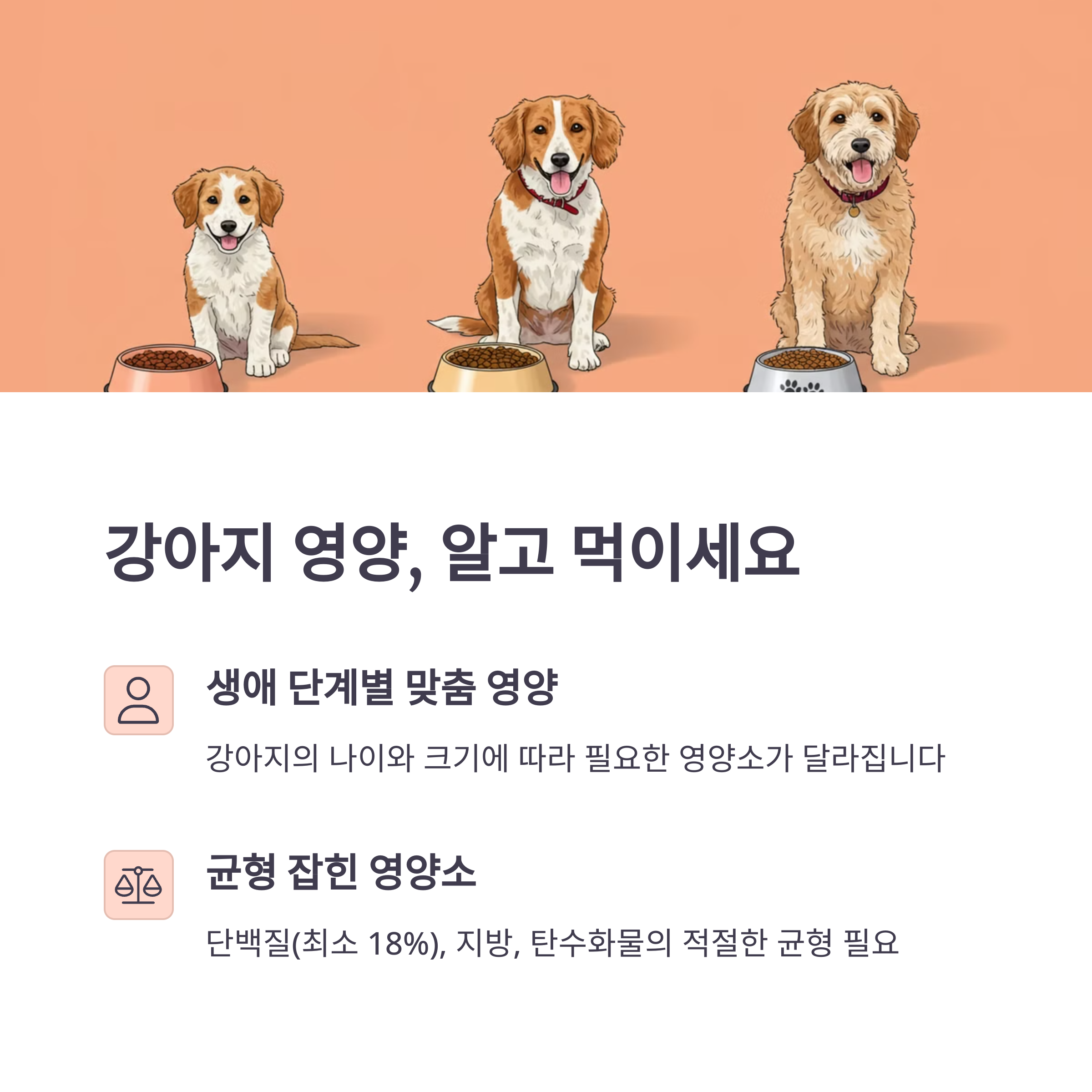 우리 강아지들은 생애 단계와 크기에 따라 영양 요구사항이 달라집니다. 귀여운 강아지가 건강하게 자라려면 성장 단계별로 적합한 영양소를 공급해야 해요.