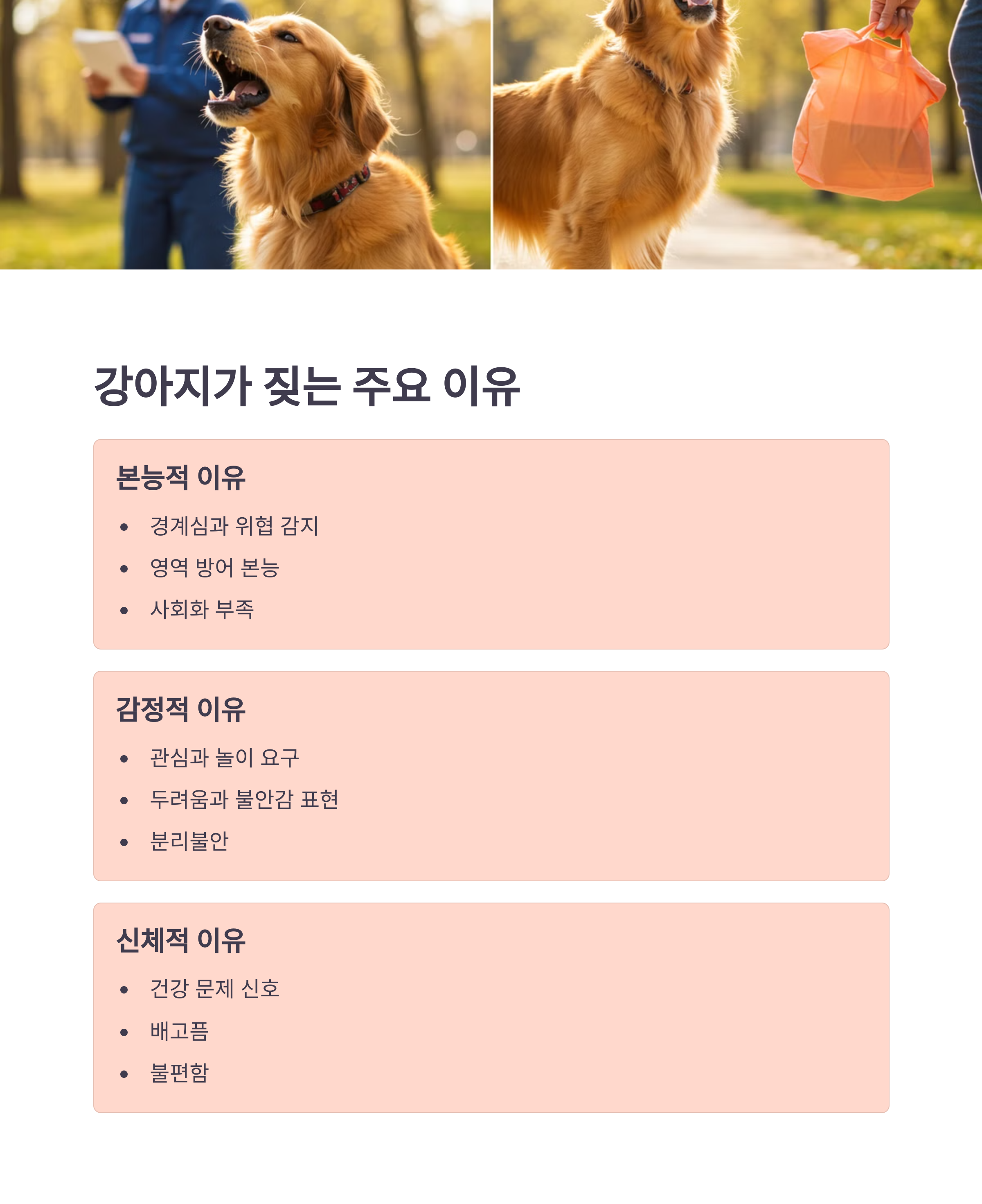 강아지들이 짖는 이유는 정말 다양해요. 가장 기본적인 이유부터 살펴볼게요!