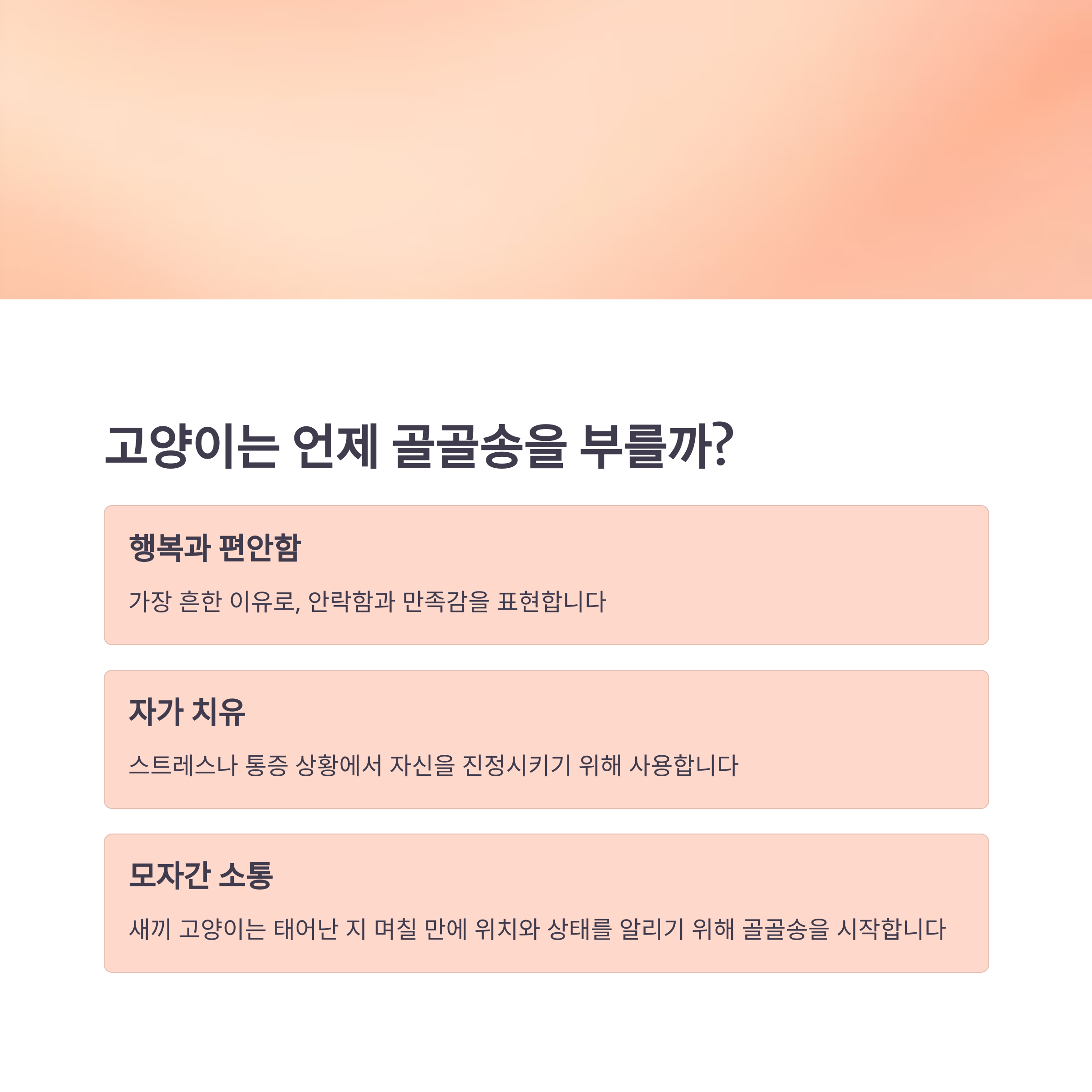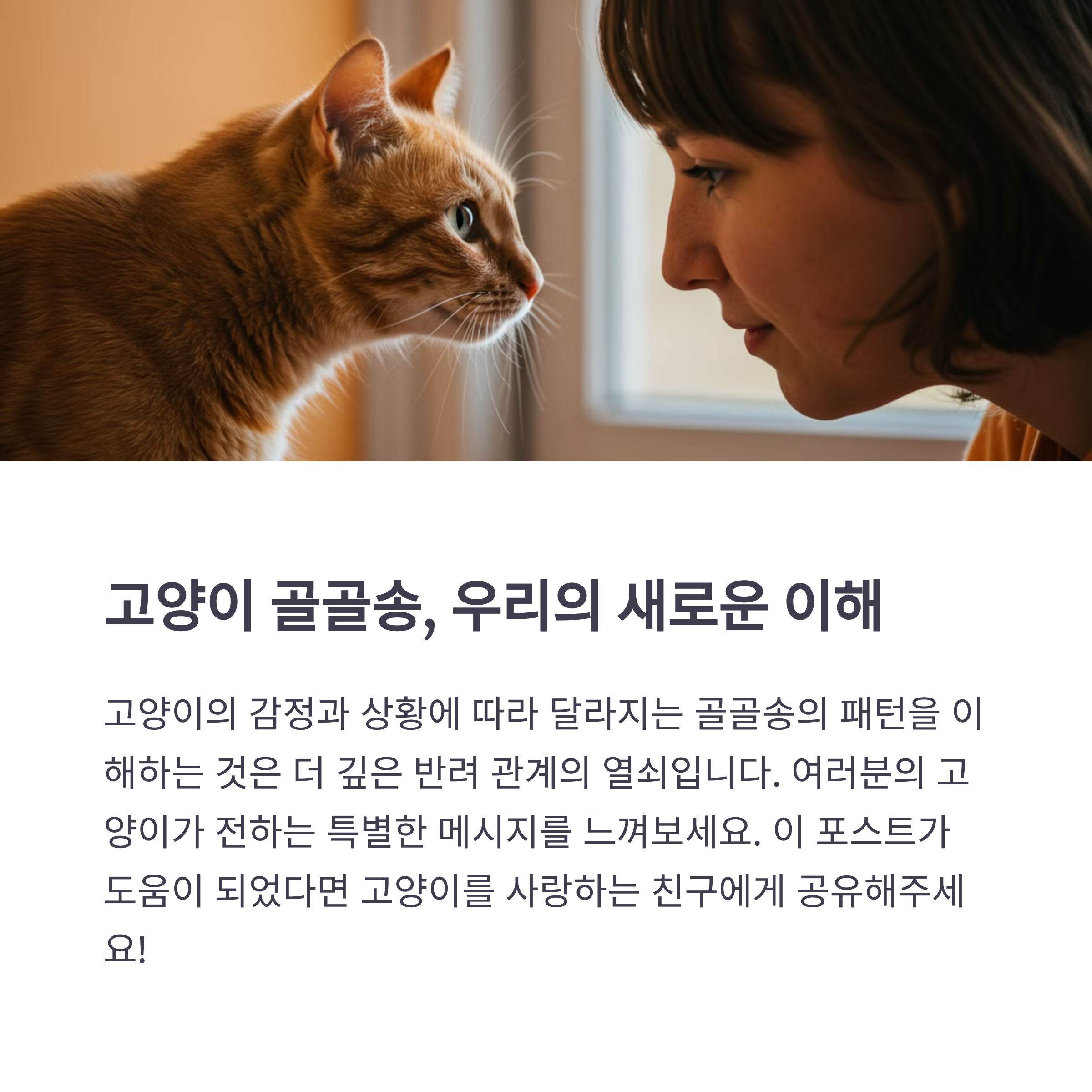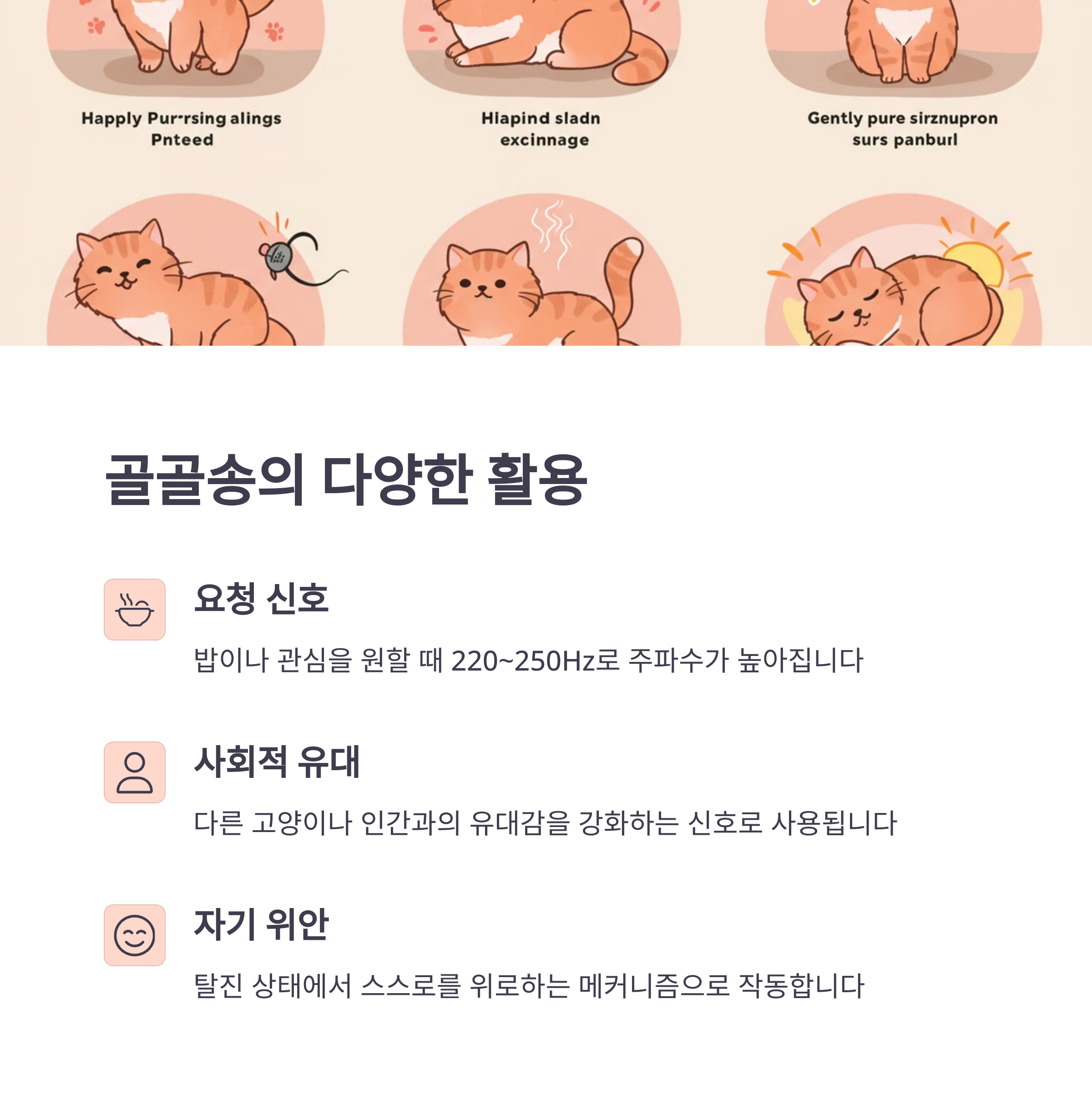 고양이의 골골송은 단순한 소리가 아닌, 복잡한 의사소통 방식이자 그들만의 특별한 언어입니다.