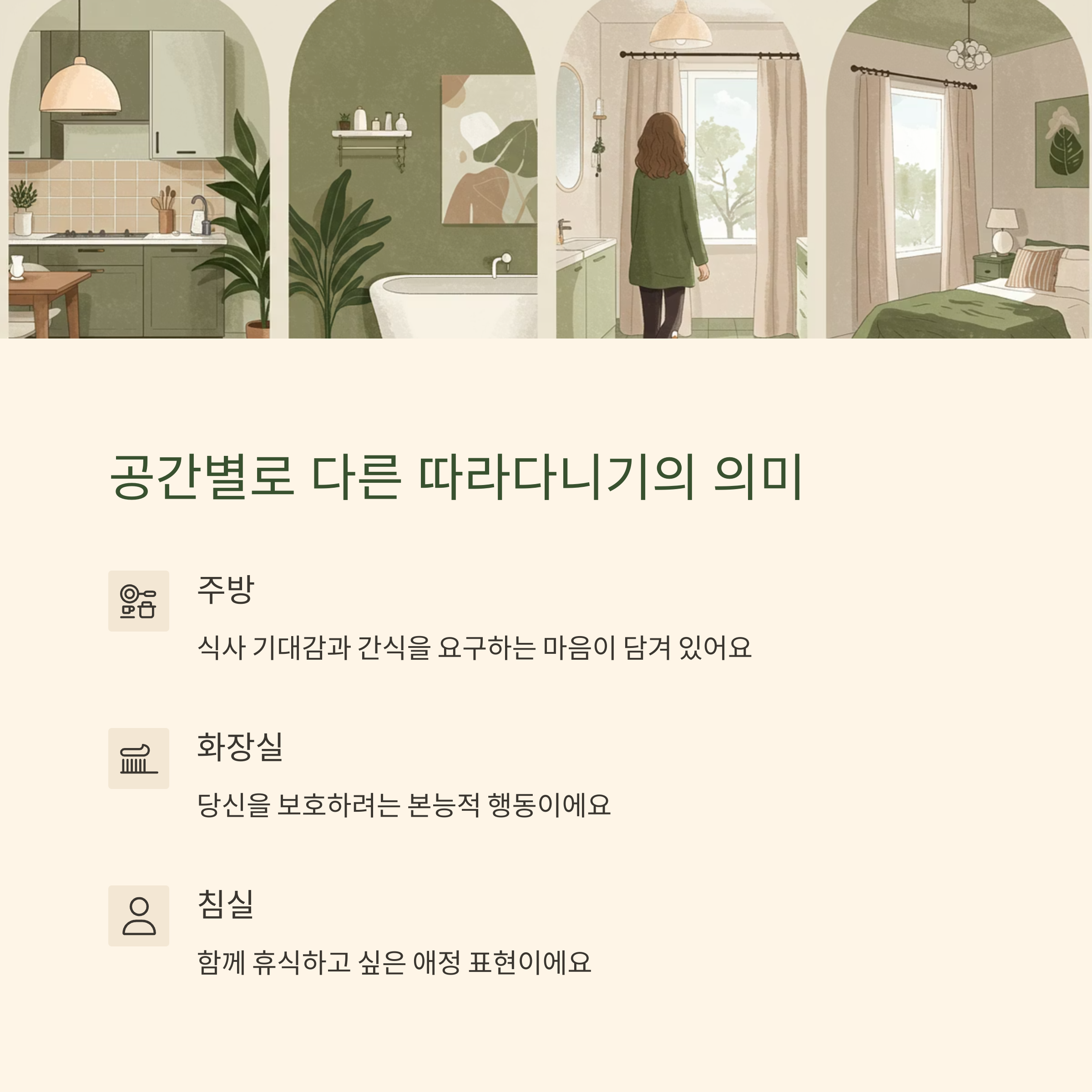 고양이가 따라다니는 장소에 따라 다른 의미를 가질 수 있어요. 특히 화장실까지 따라온다면 단순한 호기심이 아닐 수 있어요.