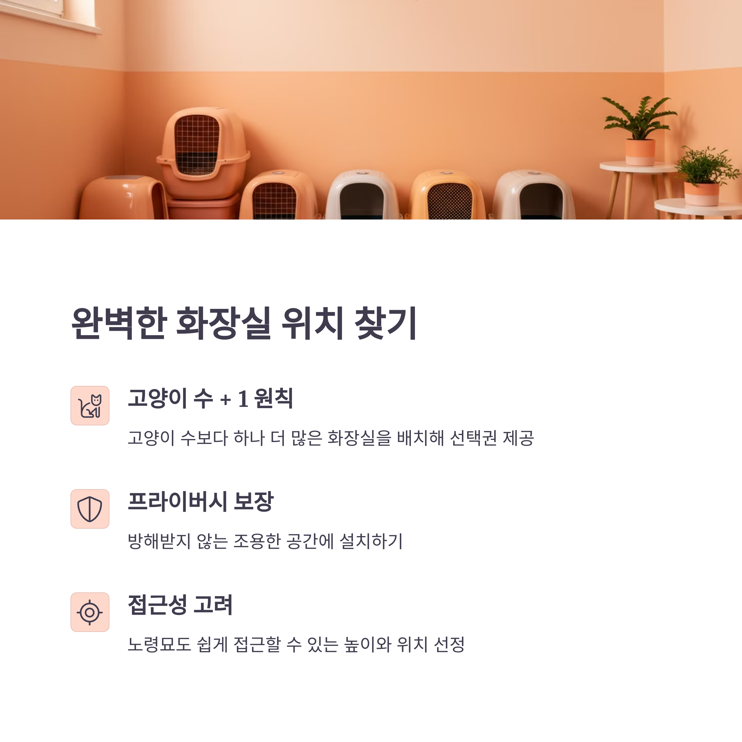 고양이 화장실의 위치는 생각보다 훨씬 중요해요! 고양이는 프라이버시를 매우 중요하게 생각하는 동물이에요. 사람이 자주 지나다니는 곳이나 시끄러운 곳에 화장실을 두면 스트레스를 받을 수 있어요. 😖