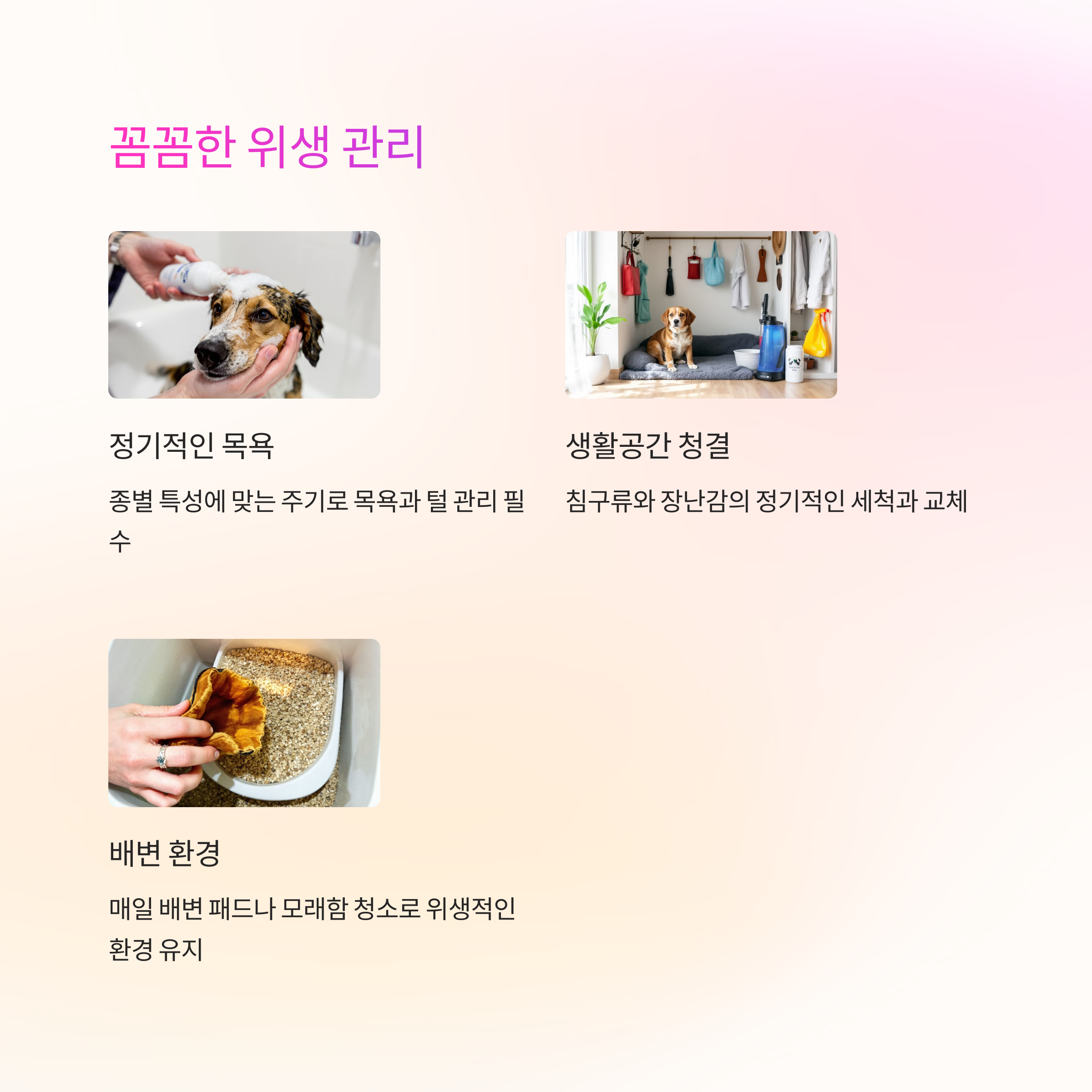 반려동물과 가족 모두의 건강을 위해 청결 유지는 필수예요.