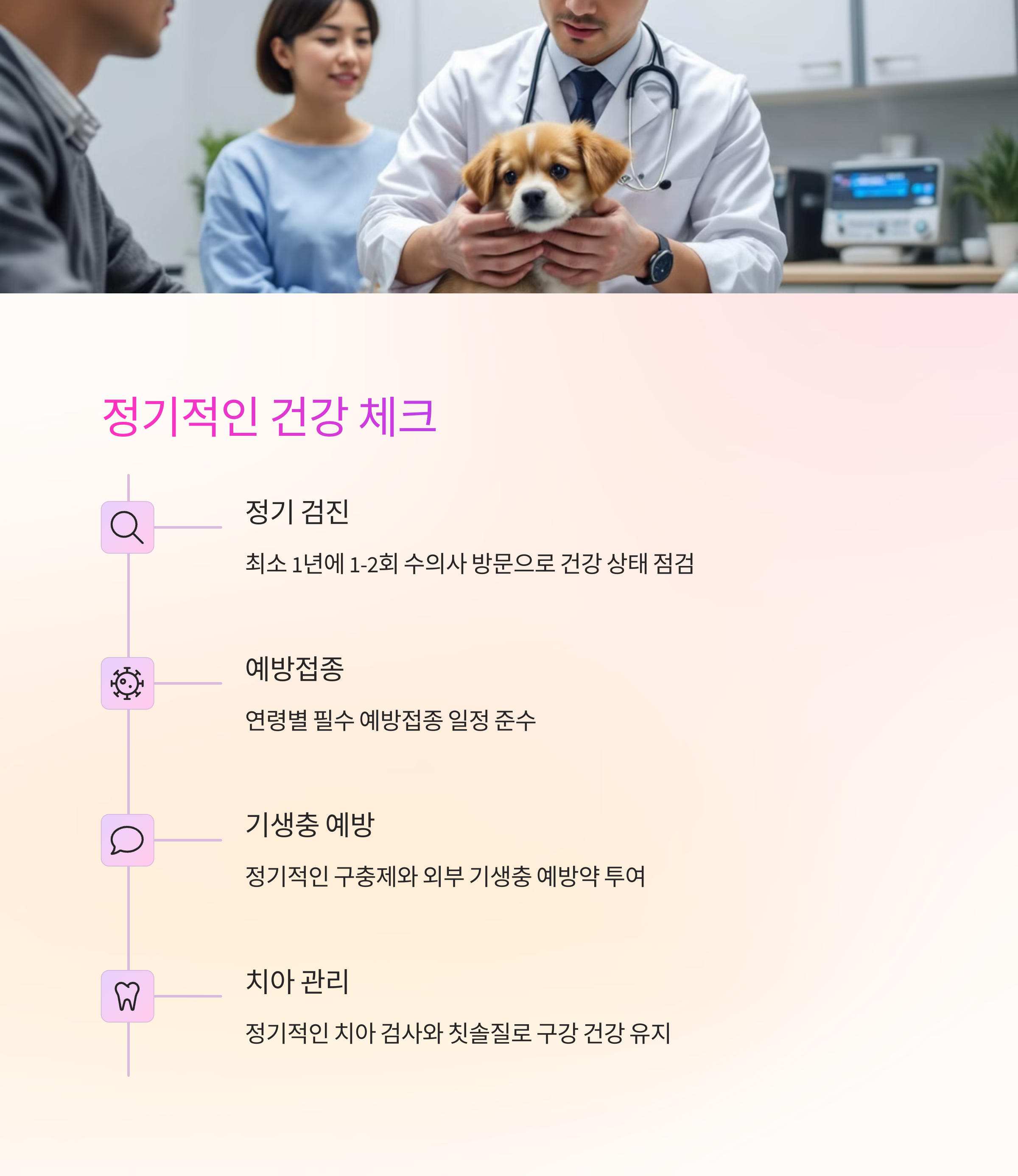 반려동물의 건강을 위해서는 정기적인 수의사 방문이 필수예요.