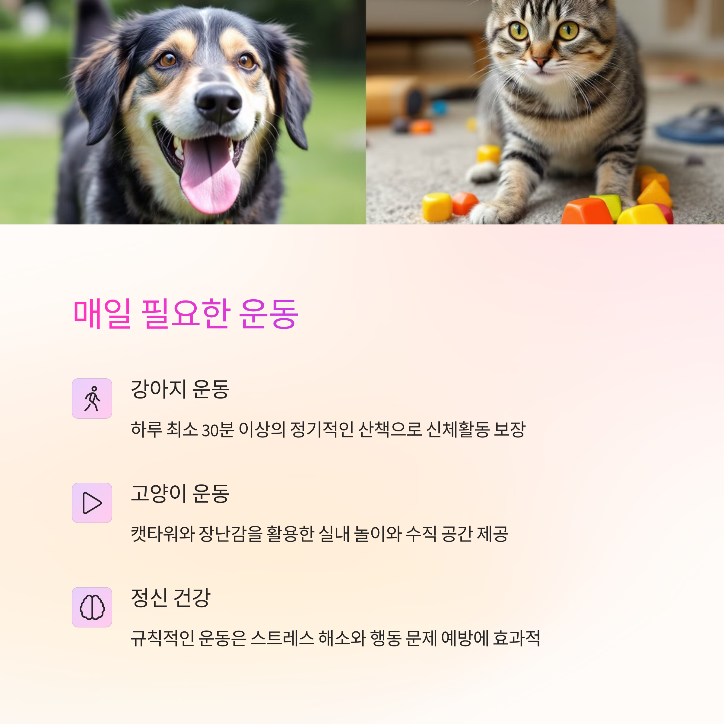 | 강아지 운동 | 고양이 활동 | 공통 놀이 |