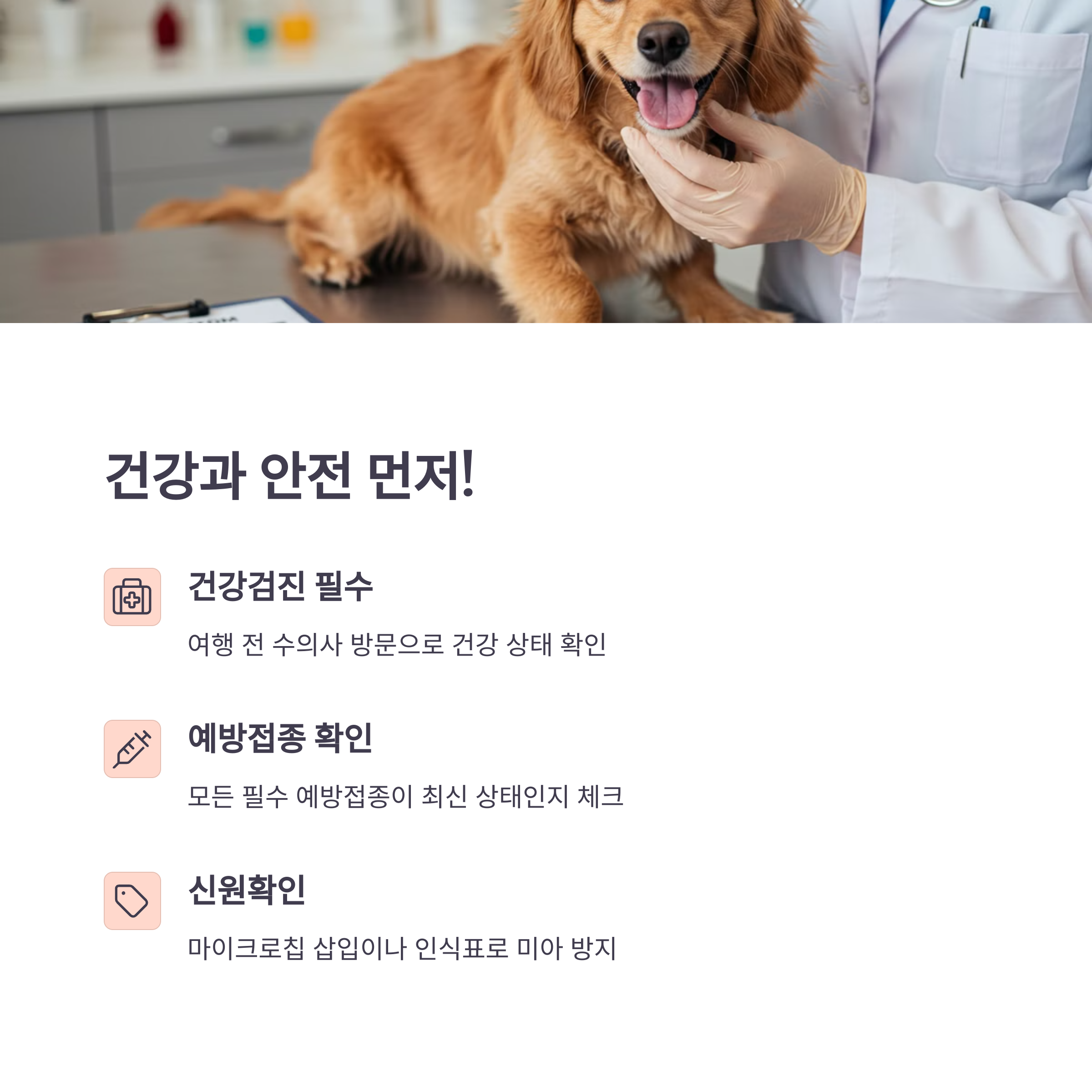 | 건강검진 | 예방접종 증명서 | 마이크로칩 |