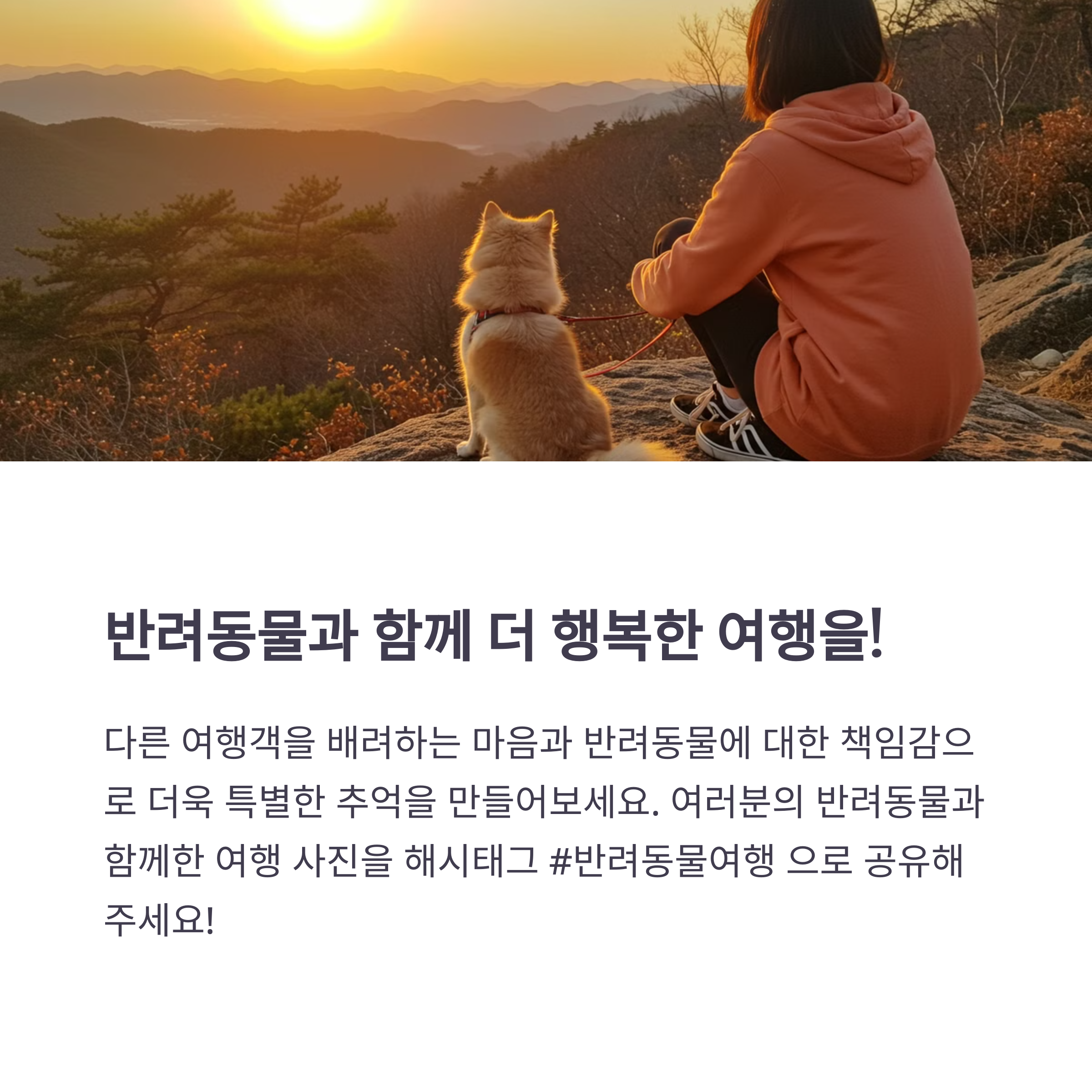 무엇보다 다른 여행객들과 현지인들을 배려하는 마음가짐이 중요합니다. 반려동물과 함께 즐거운 여행 되시길 바랍니다!