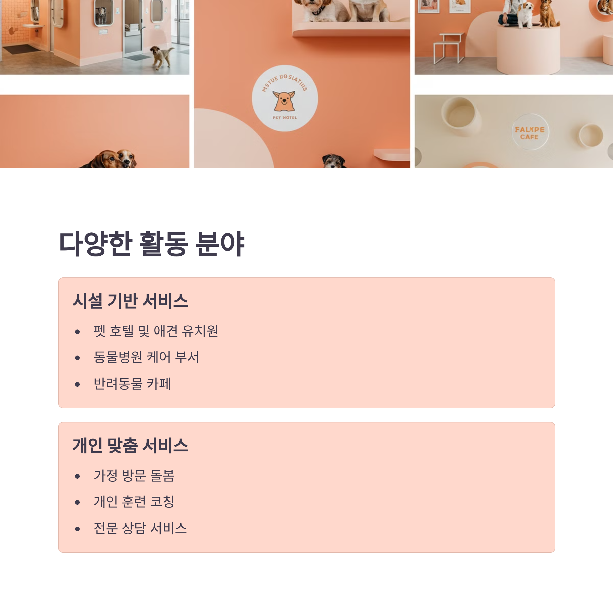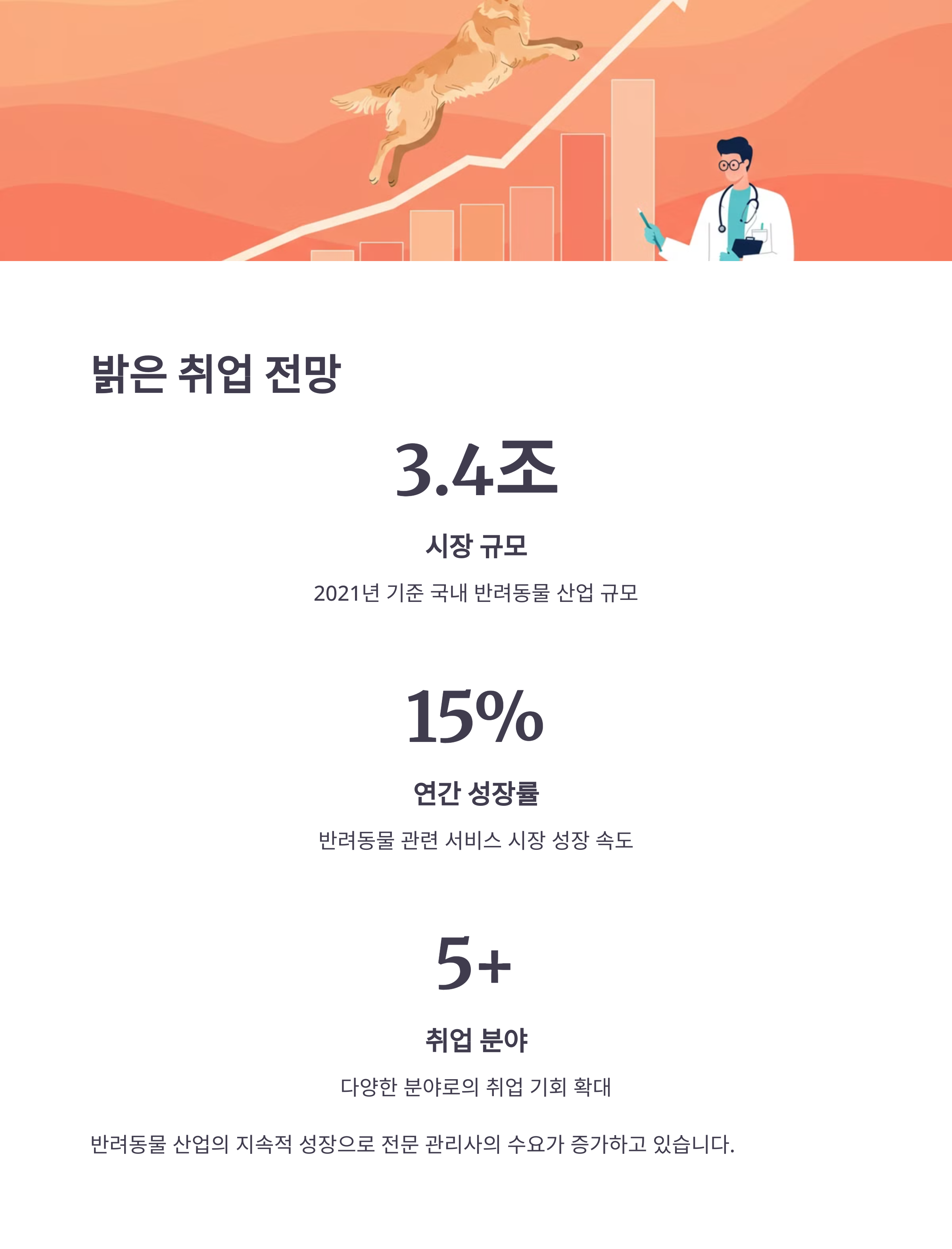 🏢 취업 분야도 동물병원, 펫샵뿐만 아니라 펫 호텔, 반려동물 유치원, 방문 케어 서비스 등으로 다양화되고 있어요.