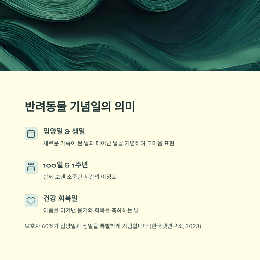 기념일은 바쁜 일상 속에서 잠시 멈추고 우리 반려동물에게 감사한 마음을 표현하는 시간이에요.