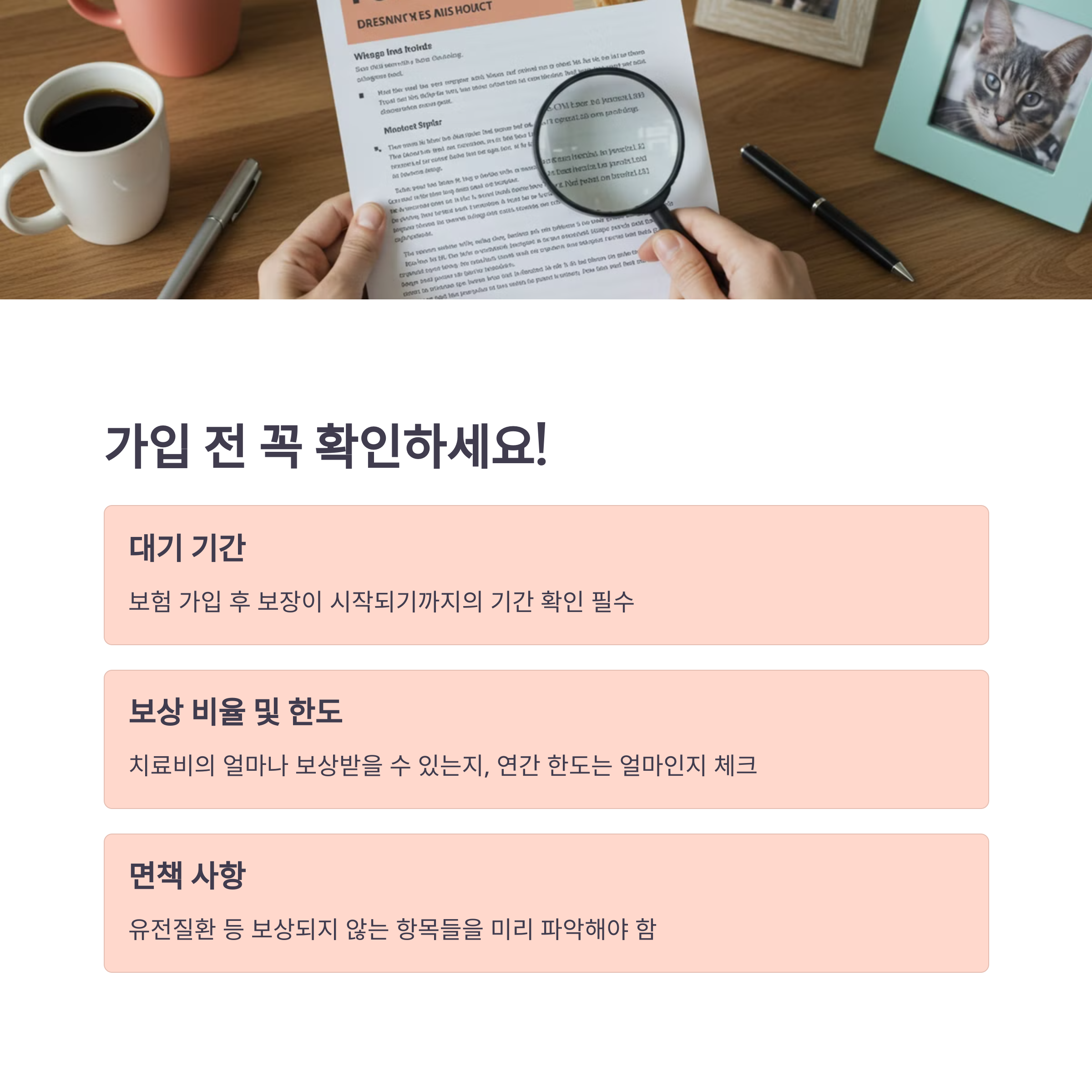 보험 가입 시 대기 기간이 있는 경우가 많으니, 가입 전 반드시 확인하고 계획적으로 준비하는 것이 중요합니다.