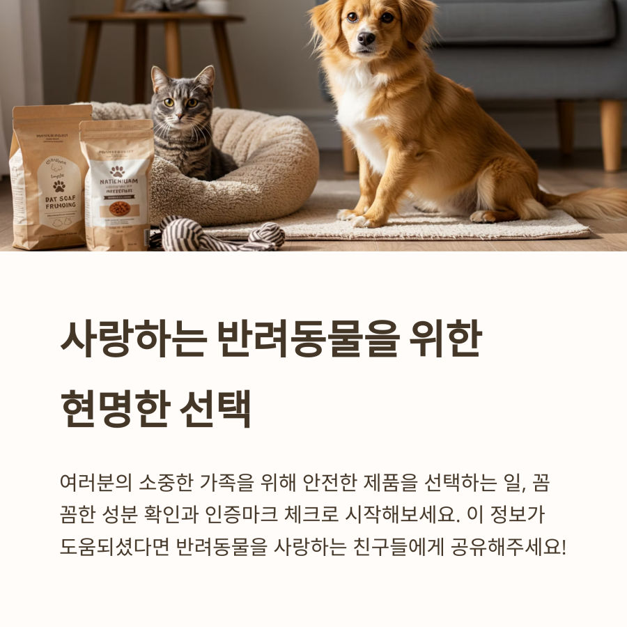 반려동물 용품을 구매할 때는 공식 인증 마크가 있는지 확인하는 것이 좋아요. 안전성 테스트를 통과한 제품이라는 증거가 될 수 있어요. ✅