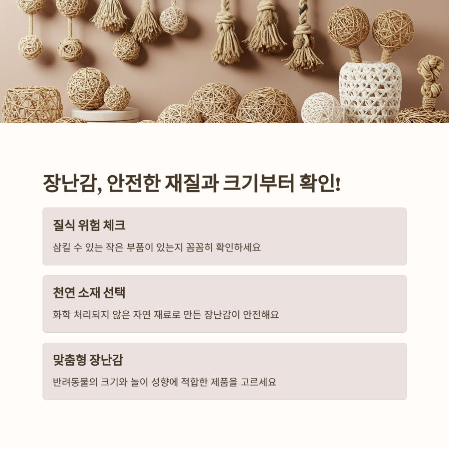 장난감은 반려동물의 스트레스 해소와 지능 발달에 도움이 되지만, 잘못 선택하면 위험할 수 있어요. 😱