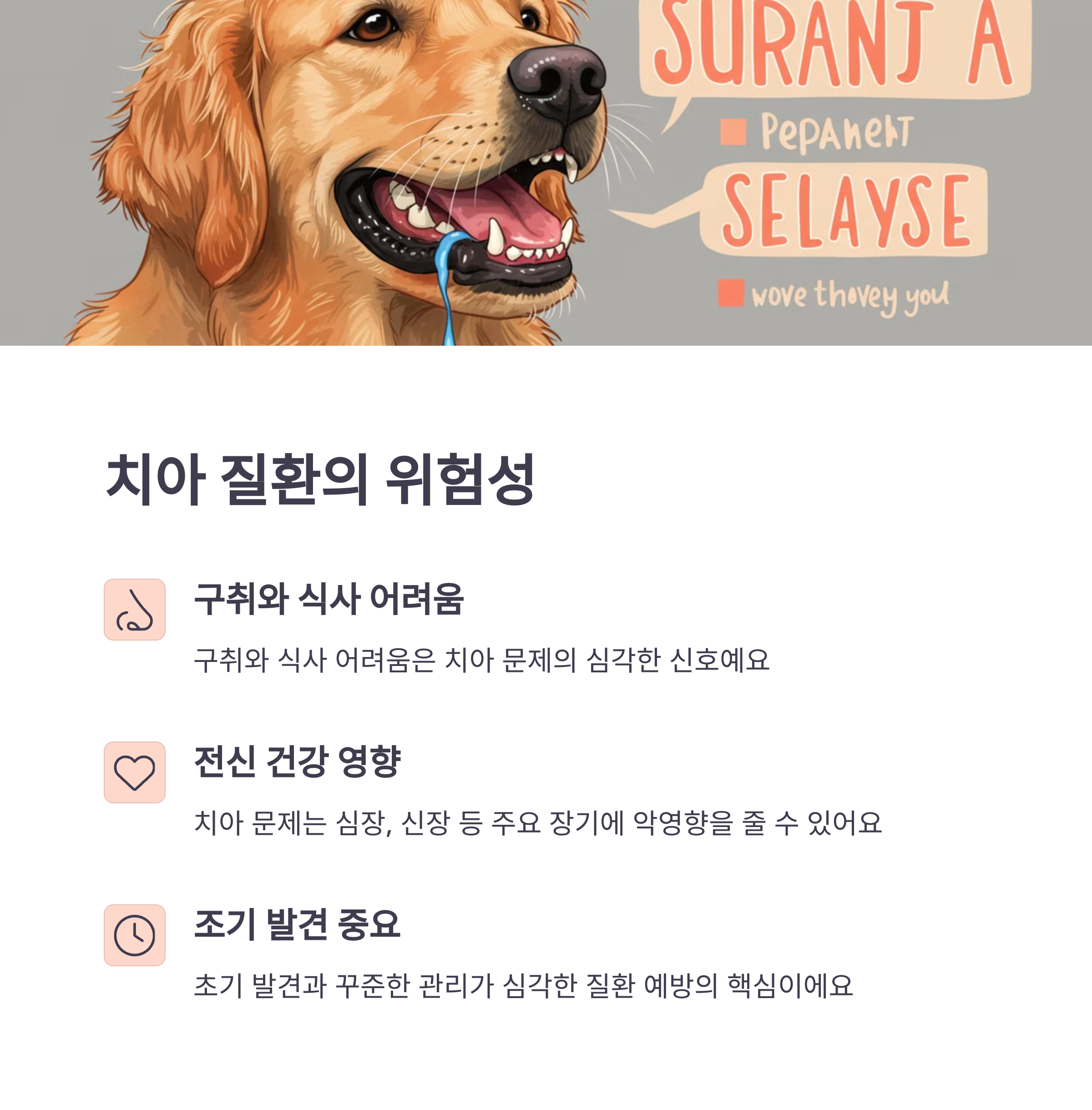 사실 우리가 잘 알아채지 못하는 사이에 반려동물들은 치아 문제로 고통받고 있을 수 있어요. 특히 치석과 잇몸 질환은 반려동물에게 매우 흔한 건강 문제랍니다.