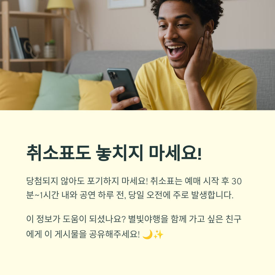 끝으로, 별빛야행 예매 성공률을 높이는 실용적인 팁을 알려드릴게요! 이 방법들은 제가 직접 여러 번의 예매 경험을 통해 터득한 노하우예요. 😉