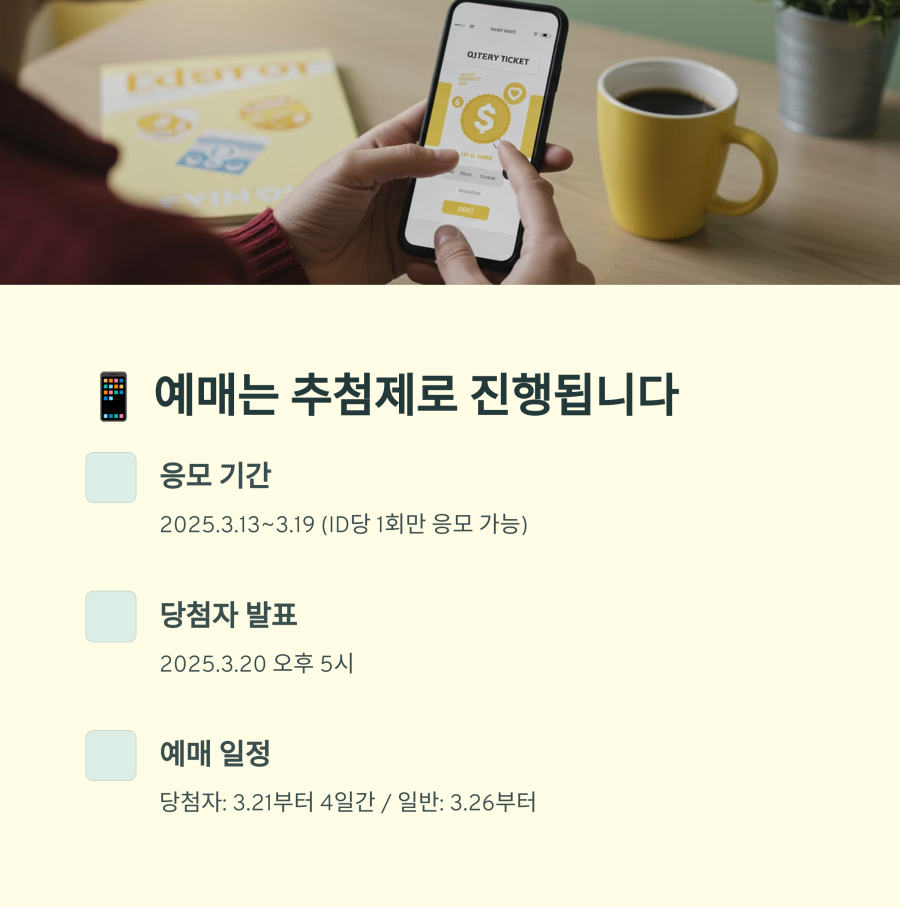 먼저, 예매 오픈 시간 10분 전에는 미리 로그인해두세요. 특히 인터넷 예매의 경우, 결제 정보까지 미리 저장해두면 클릭 몇 번으로 빠르게 예매할 수 있어요.