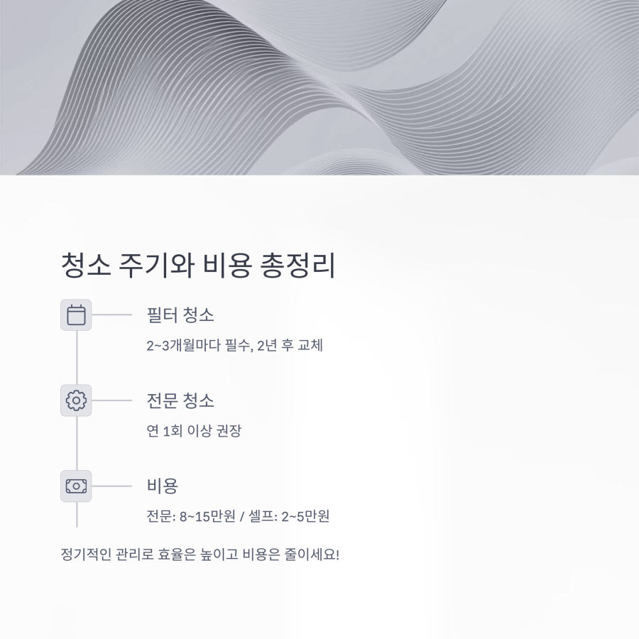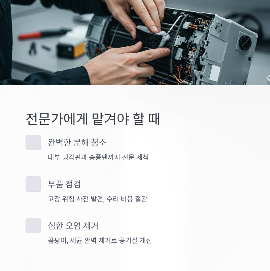 특히 2년 이상 청소를 하지 않았거나, 사용 중 이상한 냄새가 나는 경우에는 셀프 청소보다 전문 업체를 이용하는 것이 좋습니다.