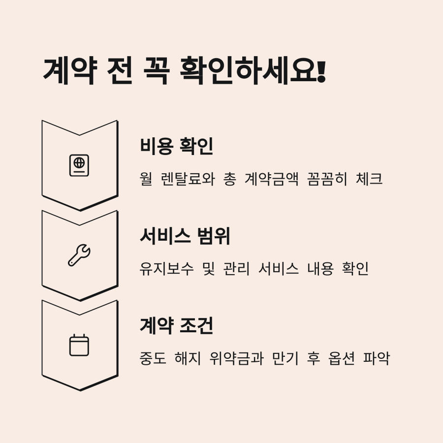 특히 계약 조건을 꼼꼼히 확인하고, 렌탈 기간 동안의 관리 서비스 내용도 세심하게 살펴보는 것이 중요합니다.