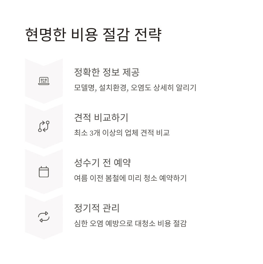 성수기를 피해 이른 봄이나 늦가을에 청소를 예약하면 비용을 절약할 수 있어요.