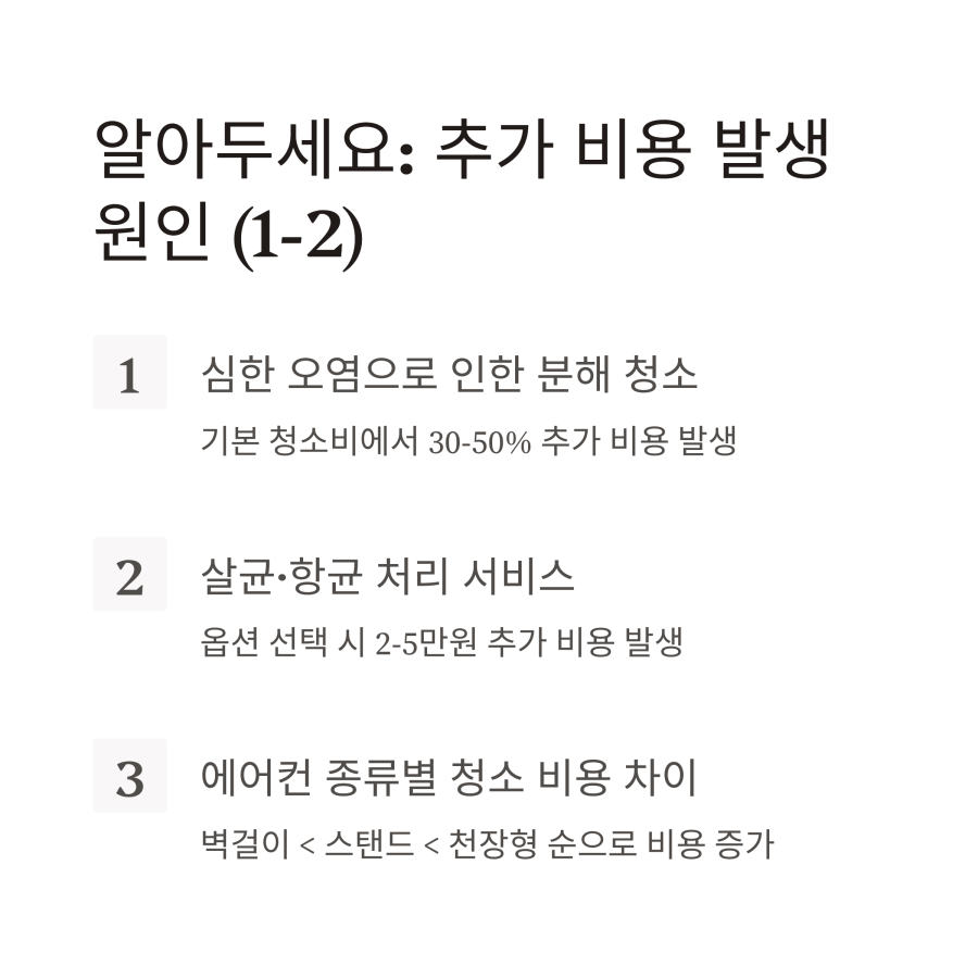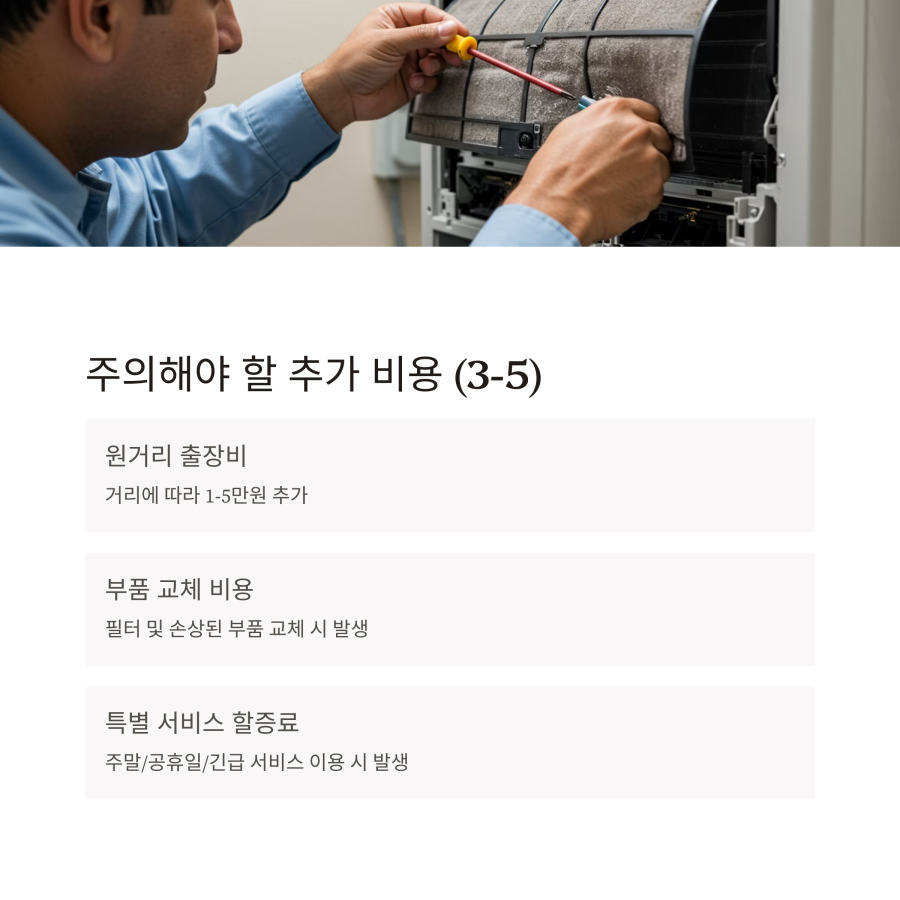 청소 과정에서 손상된 부품이 발견되거나 필터 교체가 필요한 경우 추가 비용이 발생합니다.