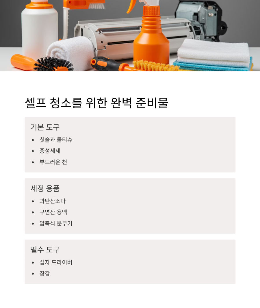 에어컨 청소를 시작하기 전, 적절한 도구를 준비하는 것이 중요해요. 가정에서 쉽게 구할 수 있는 물품들로도 충분히 청소가 가능하답니다.