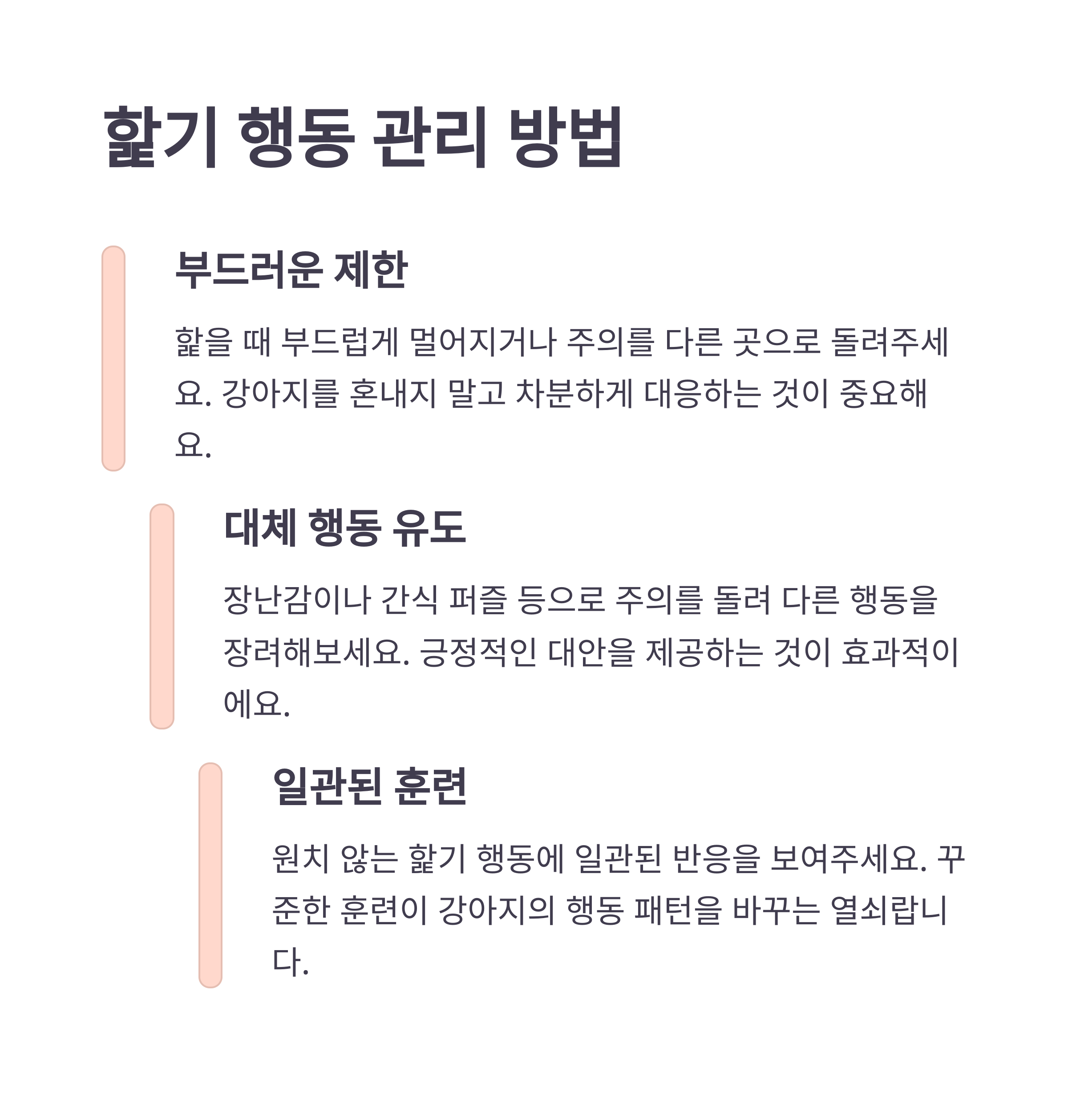 절대로 화내거나 처벌하지 마세요. 강아지는 핥는 행동이 잘못됐다고 이해하지 못하고, 오히려 불안감만 커질 수 있습니다.