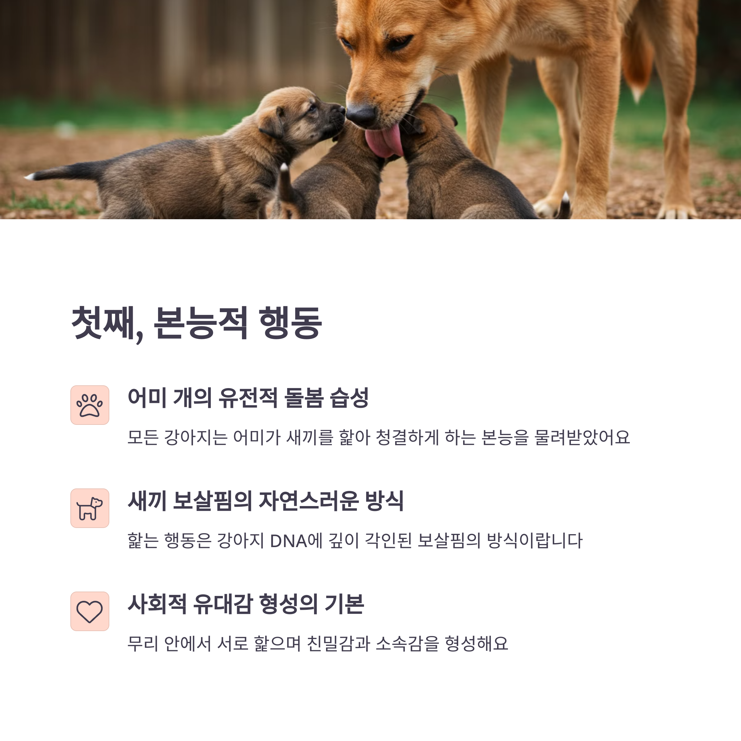 첫째, 본능적인 행동으로서의 핥기가 있습니다.