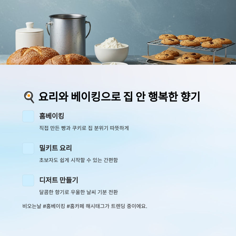 비 오는 날 집에서 직접 요리나 베이킹을 해보는 건 어떨까요?