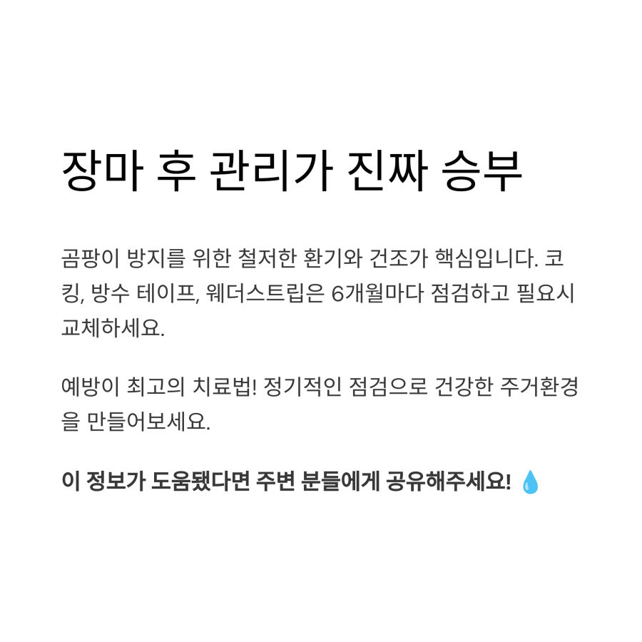 정기적인 점검과 관리로 다음 장마철도 걱정 없이 준비할 수 있답니다! 🌞