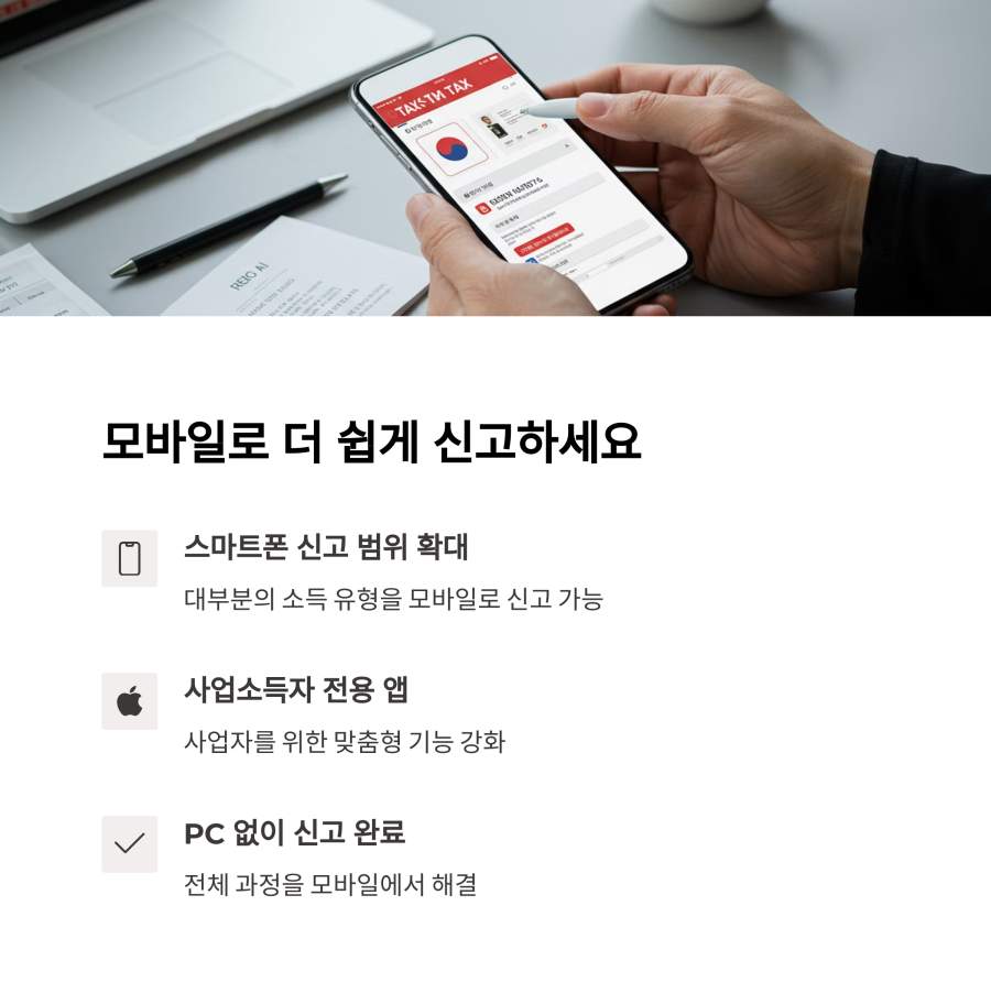 올해 가장 눈에 띄는 변화는 모바일 신고 시스템이 훨씬 편리해졌다는 점이에요. 이제 복잡한 소득도 스마트폰으로 손쉽게 신고할 수 있어요.