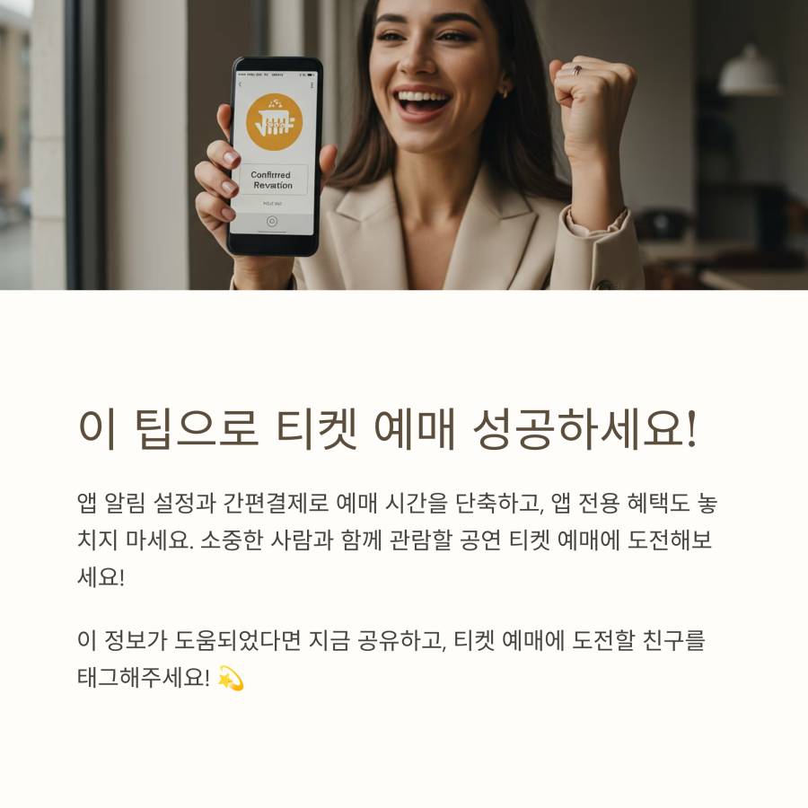 이제 여러분도 티켓링크 예매의 달인이 되셨네요! 이 글에서 알려드린 팁들을 활용하시면 원하는 공연 티켓을 성공적으로 예매하실 수 있을 거예요. 😄
