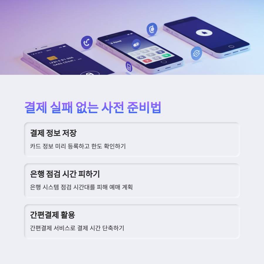 또한 은행 점검 시간(23:00~24:00)에는 카드 결제가 원활하지 않을 수 있으니, 예매 시간이 이 시간대와 겹친다면 간편결제나 페이 서비스를 이용하는 것도 좋은 방법이에요. 🔄