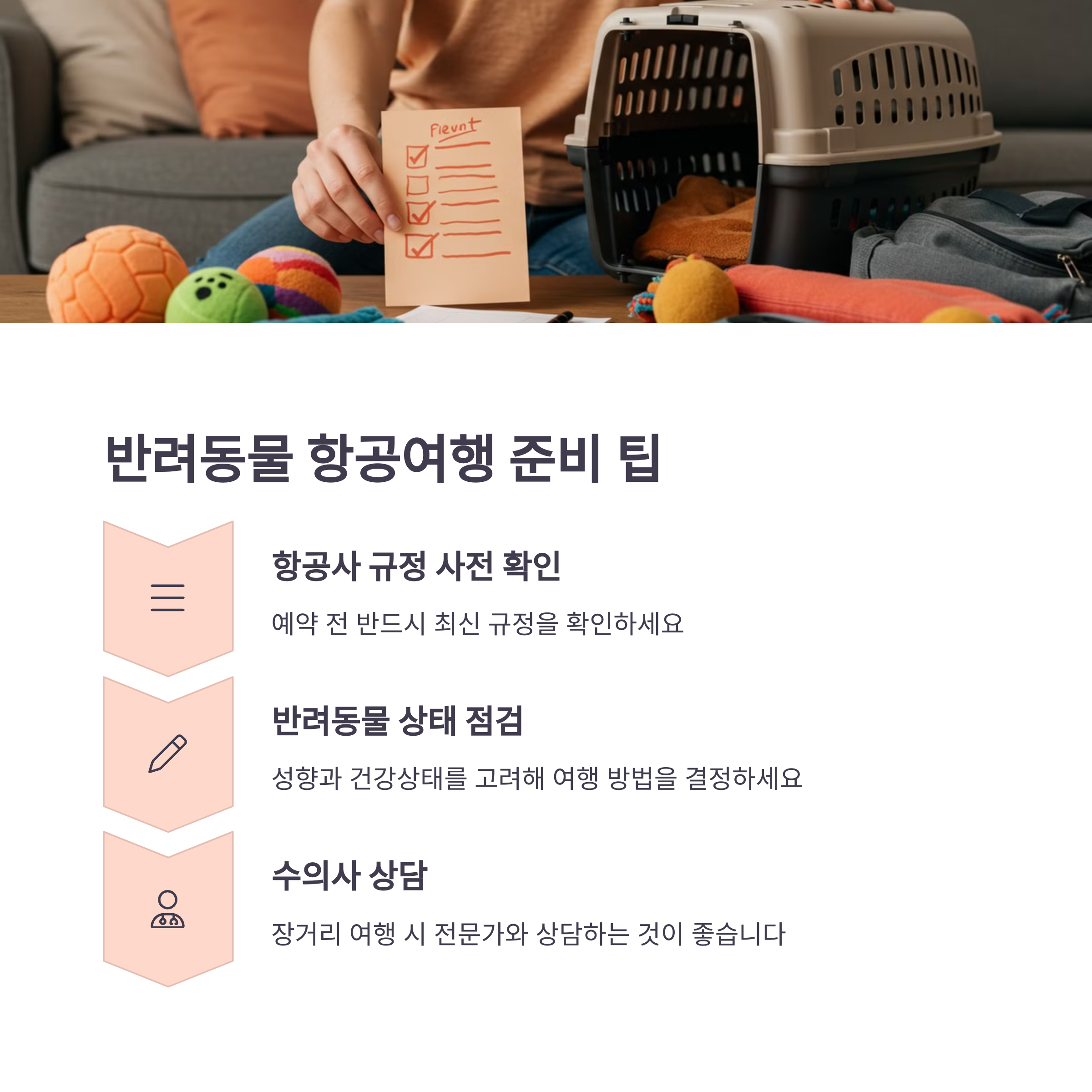 반려동물과 함께하는 항공 여행은 철저한 사전 준비가 필요해요. 항공사 규정과 목적지 국가의 입국 요건을 미리 확인하고, 반려동물의 건강과 안전을 최우선으로 고려해야 해요.