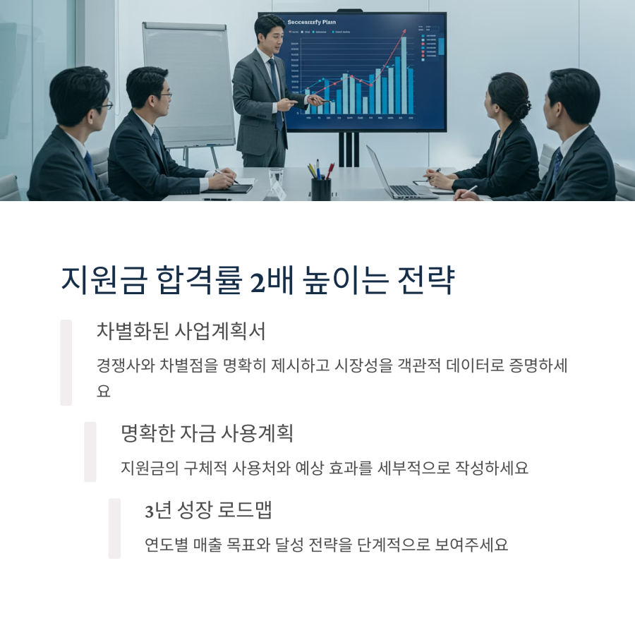 지원금 신청에서 가장 중요한 것은 탄탄한 사업계획서입니다. 구체적인 시장 분석과 차별화 전략, 실현 가능한 수익 모델을 제시하는 것이 핵심이에요.