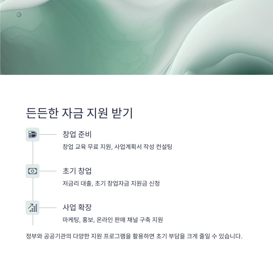 정부 및 지자체에서는 저금리 대출과 창업 지원금 등 다양한 형태로 자금을 지원하고 있으며, 일부 프로그램은 교육 이수자에게 우선 지원 혜택을 제공하기도 해요.