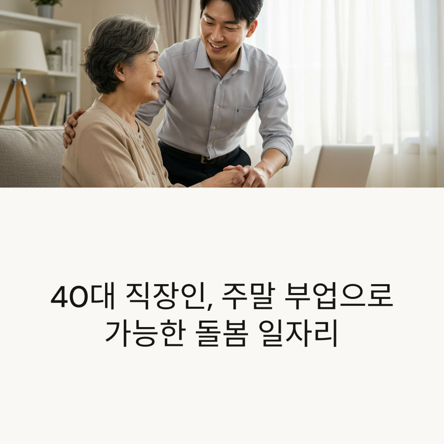 안녕하세요, 여러분! 오늘은 40대 직장인들이 주말에 할 수 있는 돌봄 일자리에 대해 함께 알아보려고 해요. 평일엔 회사에서 바쁘게 일하고, 주말에는 조금이라도 추가 수입을 올리고 싶으신 분들 많으시죠?