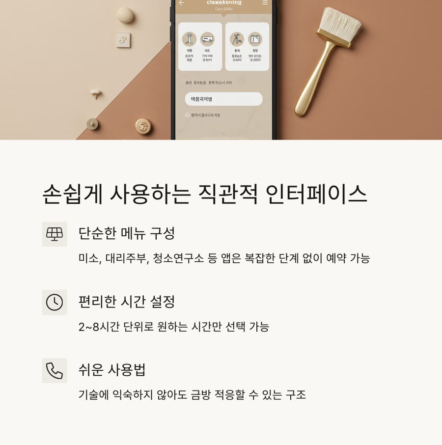 | 청소 서비스 | 정기 청소, 특수 청소 예약 |