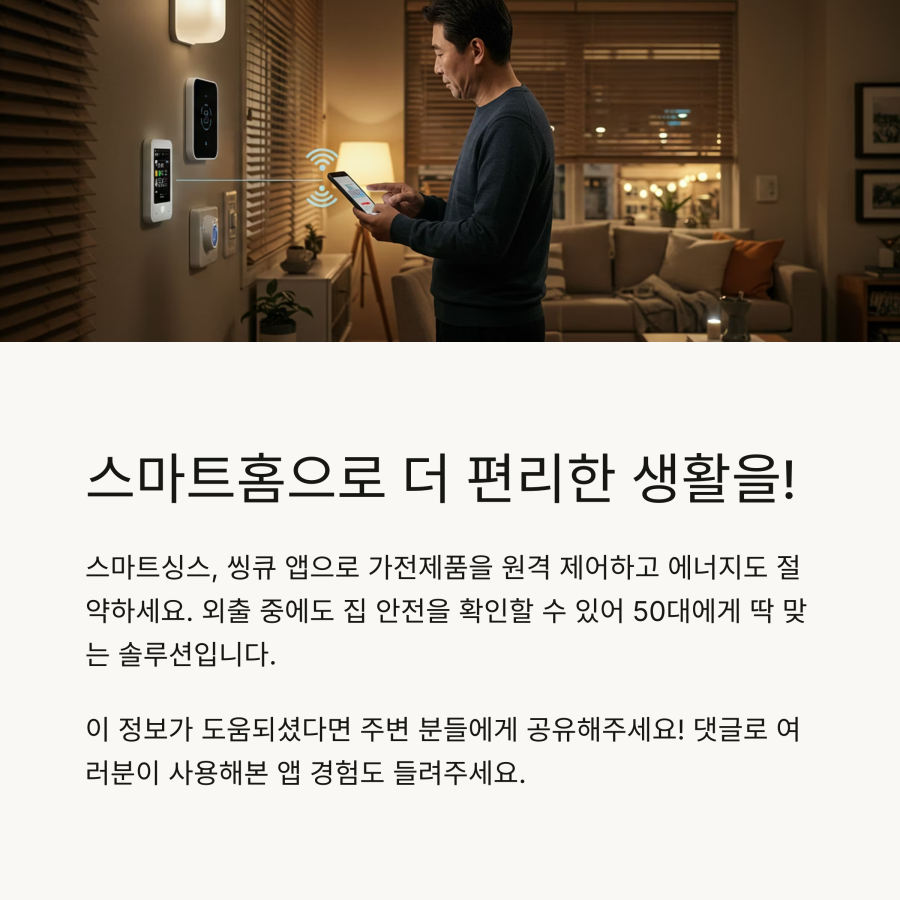 특히 50대 분들은 스마트홈 기술을 통해 가전 제품 사용 실수를 줄이고, 안전하게 관리할 수 있습니다.