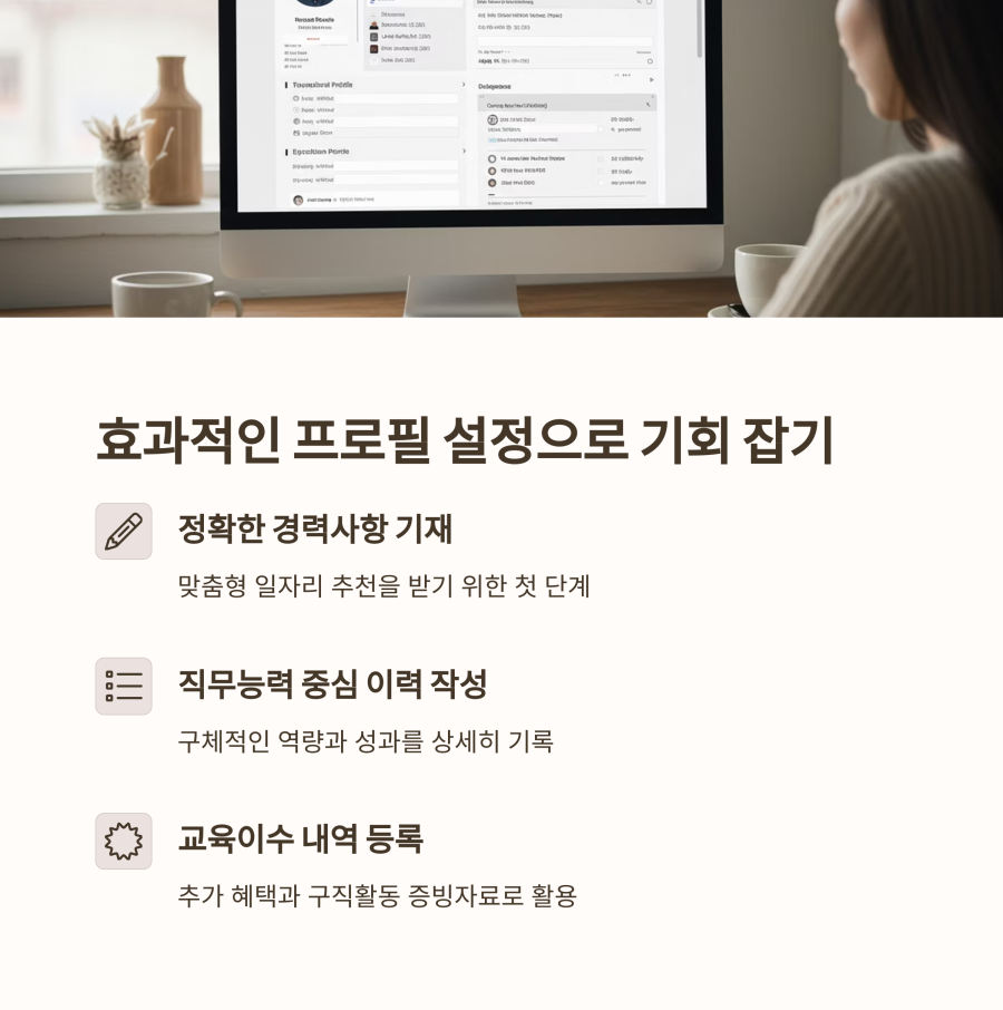 회원가입 시 생년월일과 경력사항을 꼼꼼히 입력하면, 여러분의 연령대와 경력에 맞는 맞춤형 일자리와 교육과정을 추천받을 수 있어요.
