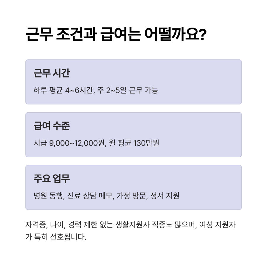 | 요양보호사 자격증 보유 시 우대 | 시급 최저임금~12,000원 수준 |