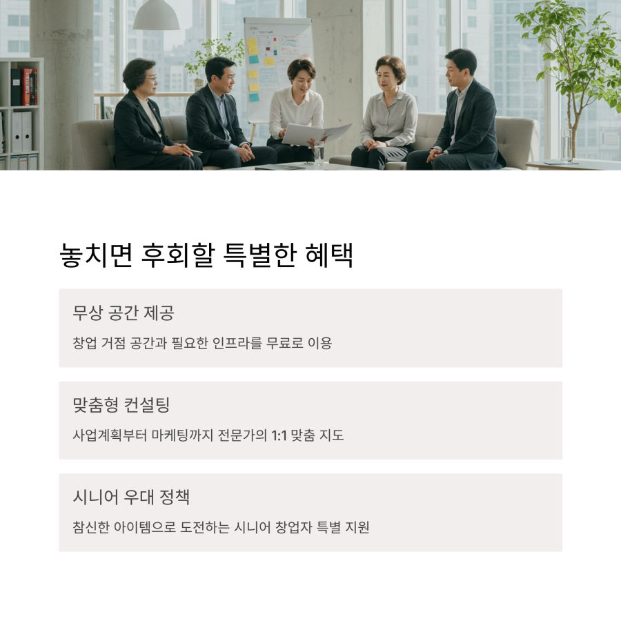 정부 지원 프로그램인 시니어 기술창업센터는 50세 이상 예비 창업자를 위한 전문 컨설팅을 제공해요. 사업계획서 작성부터 마케팅 전략까지 종합적인 도움을 받을 수 있답니다.